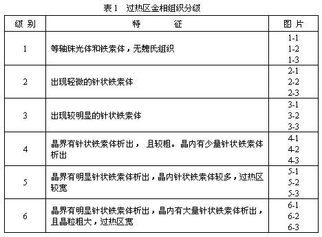 根据针状铁素体的消除情况及晶粒度大小,将魏氏组织分为六个等级,见表1及图1-1~图6-3。